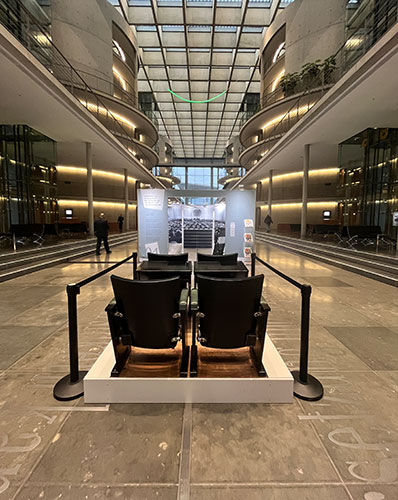 Die Ausstellung ist über den Westeingang des Paul-Löbe-Hauses, Konrad-Adenauer-Str. 1, 10557 Berlin, zugänglich. Bitte finden Sie sich mindestens 15 Minuten vor dem Besuchstermin beim Personal der Westpforte ein, damit ausreichend Zeit für die Einlasskontrolle besteht.